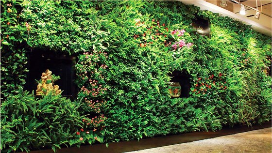 植物墙是兼具观赏与生态功能的新型装饰模式,在室内装饰上开始逐渐流行。室内植物墙一方面能够创造室内环境生态效益,另一方面,通过对多品类植物色彩搭配及图案布置,形成独特的生态装饰风格,打造出与众不同的室内装饰环境。