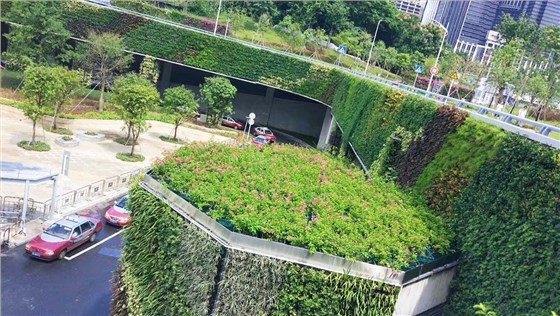 建设世界性著名花园城市,立体绿化是关键的一环。福田作为高度发展区,面对土地紧缺的刚性约束,并未停滞不前,而是大胆创新,克服环境及土地束缚,高标准完成了一大批立体绿化建设,不断拓展辖区绿量及生态景观节点,高品质、多元化形式的绿色建筑景观共同编织着空间交错、立体融合的绿化簇群。广深港高铁福田站立体绿化景观工程的建成,成为全市立体绿化建设的新标杆。