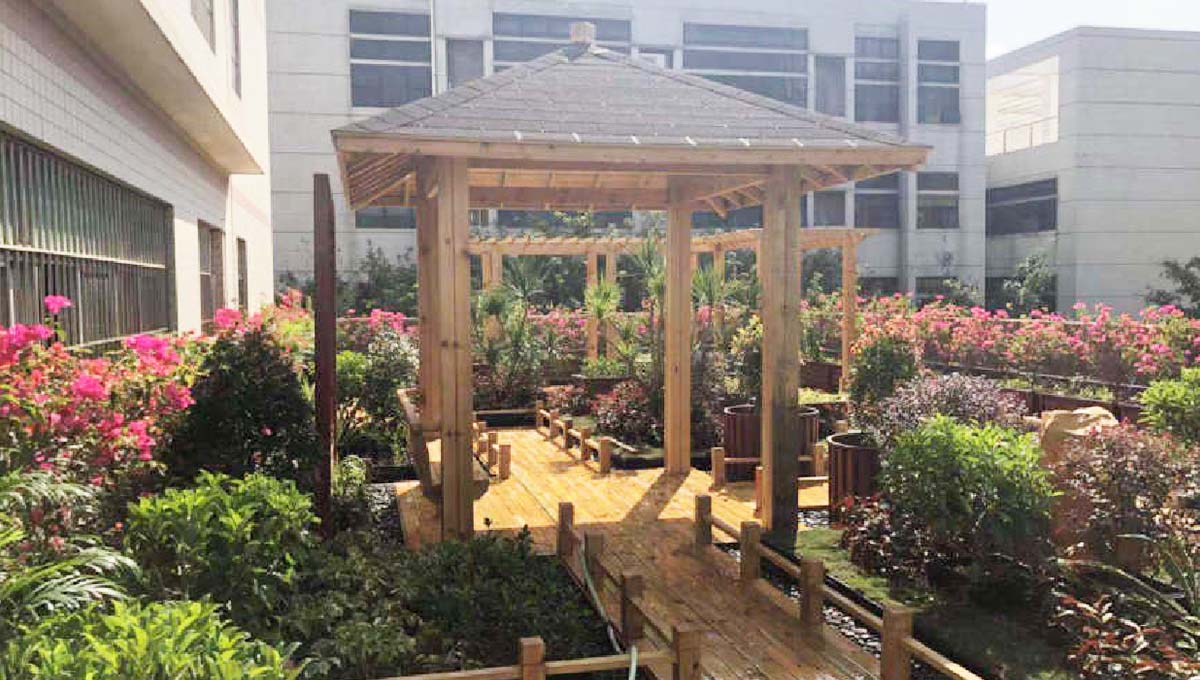项目概况:>宝安劳动办屋顶花园改造工程是响应创办美丽生态城市,美化城市生活环境的城市发展计划,通过合理深度再利用城市现有建筑面积,打造城市屋顶花园的示范项目。在建筑屋顶打造空中生态休闲环境,配置园林小景等设施,环境优美,独出新意。